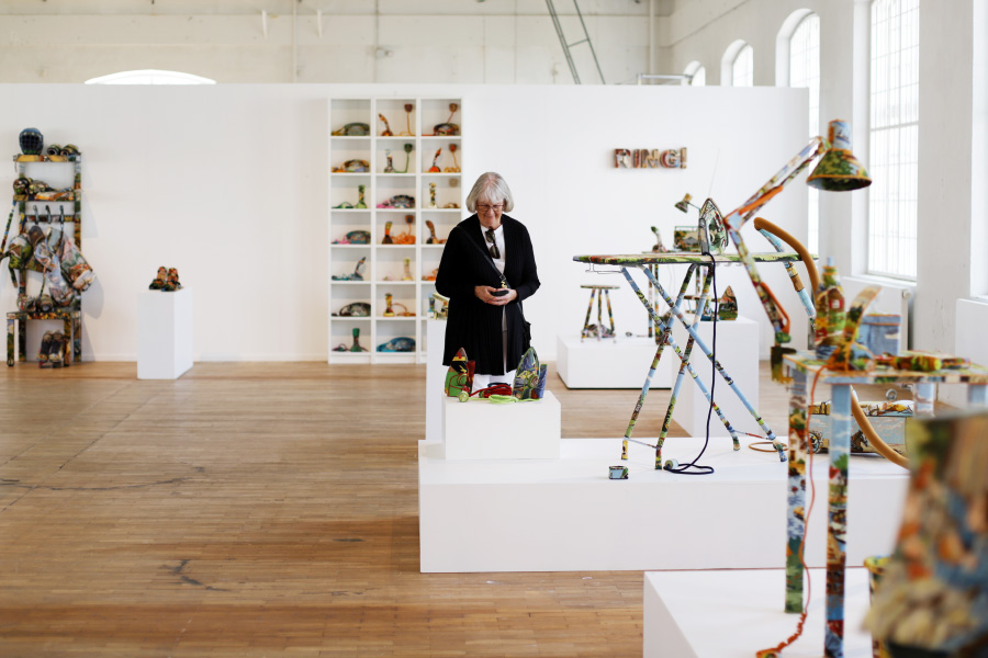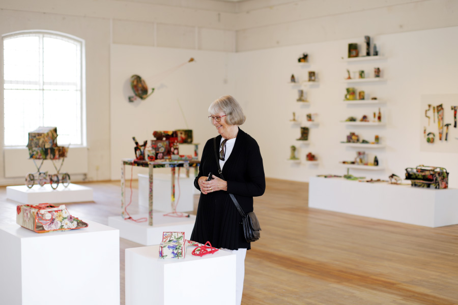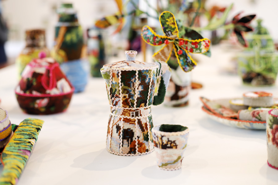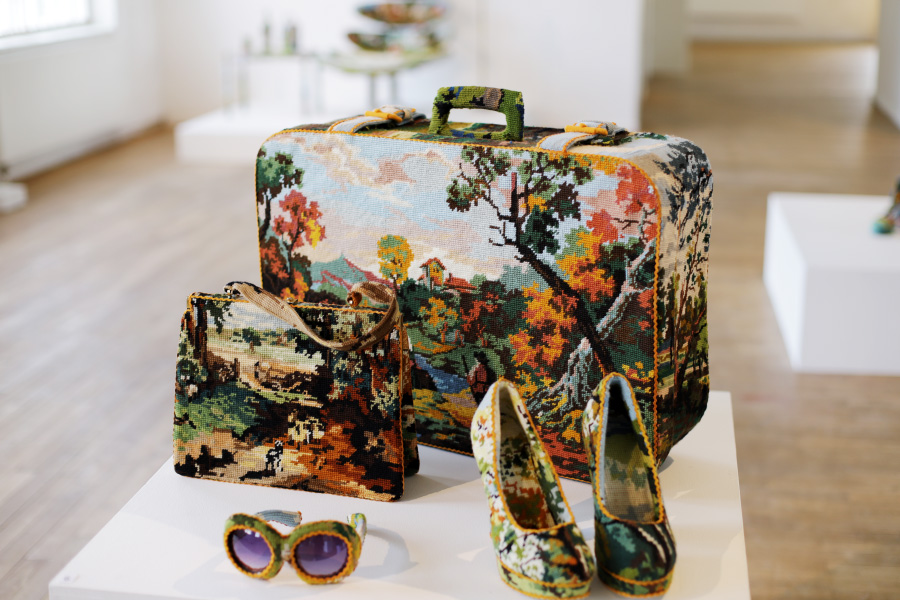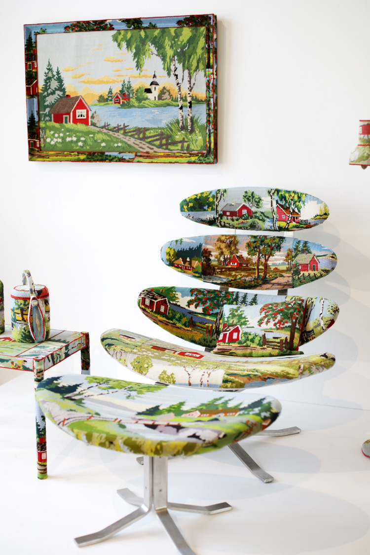 Onsdag: Utflykt till Mark för att umgås med min gudmor Gunilla. Vi åt smarrig lunch och gick på konstutställning på Rydals museum. Den här utställningen med verk av Ulla-Stina Wikander fångade mig totalt. Massvis med vardagsföremål inklädda i broderier köpta på loppis. Jag var helt fascinerad. Här är några av mina favoriter: