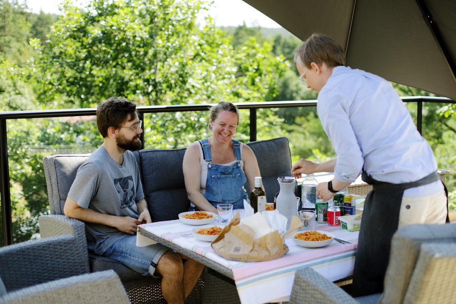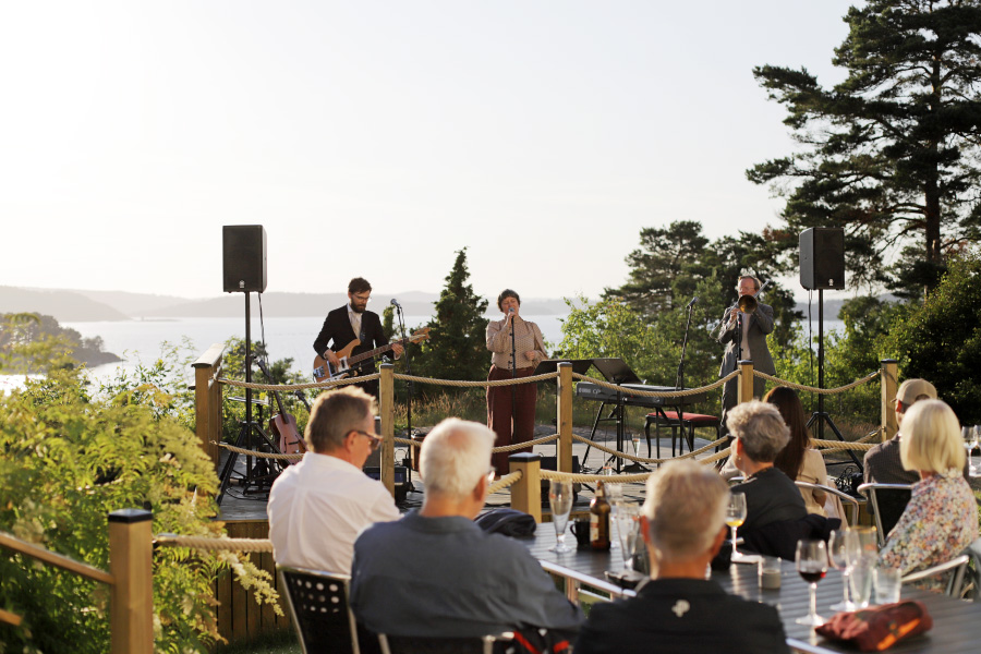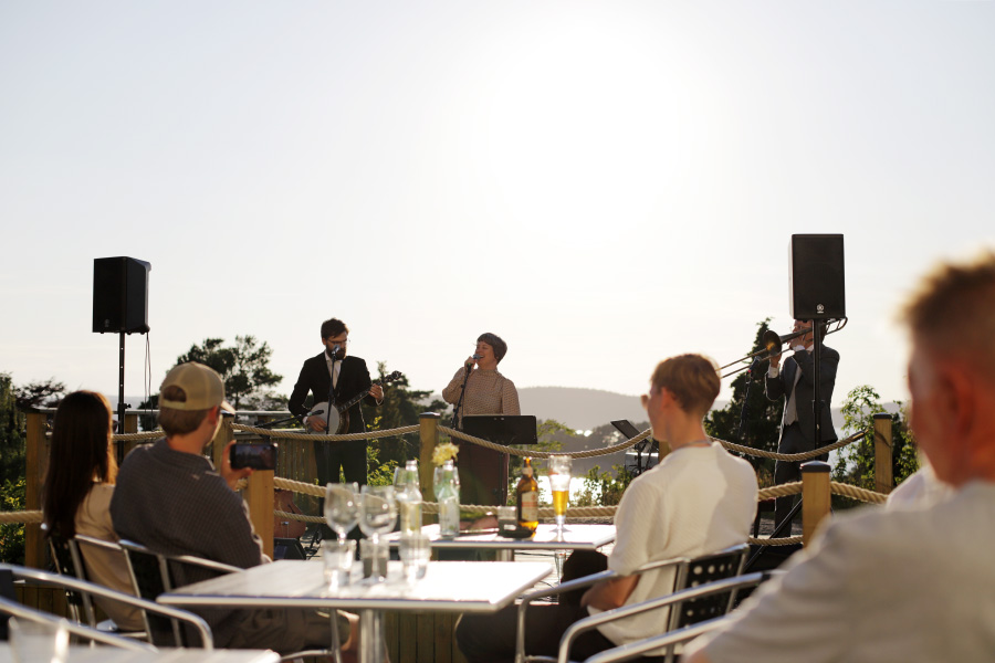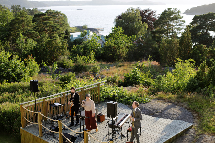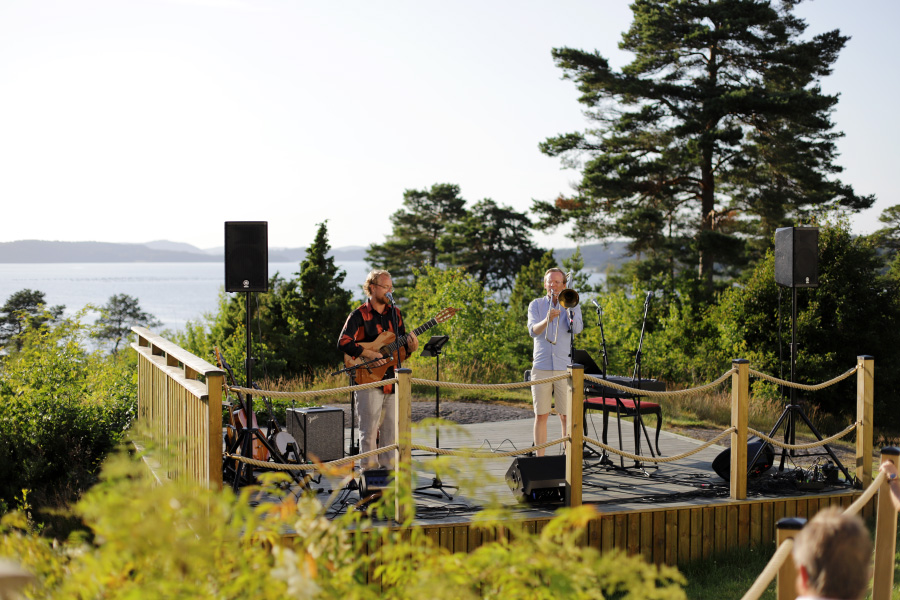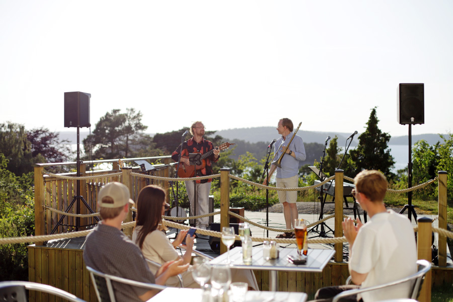 Och sedan åkte vi bort till Åh Stiftsgård där vi spelade på deras sommarmusikarrangemang Musik på altanen. Men först spelade Gustav ihop med Daniel Petrén.