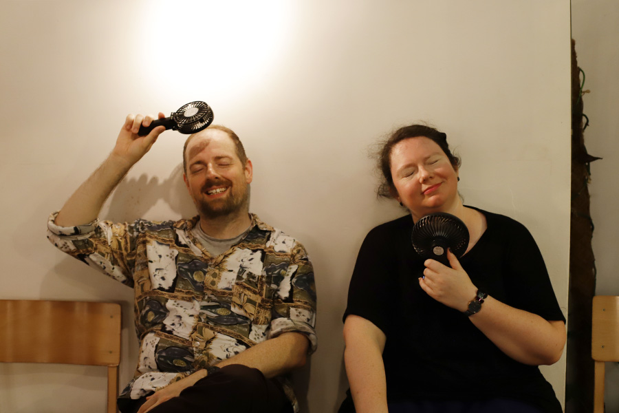 We were there in the middle of a heatwave and it got veeeery hot on the dance floor. Liam and Jenny dealt with the heat with these newfangled contraptions ...