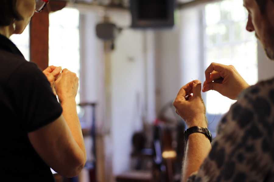 ... and when she talked about a special knot that was used for weaving (I think), Liam immediately needed to learn how to tie it. :)
