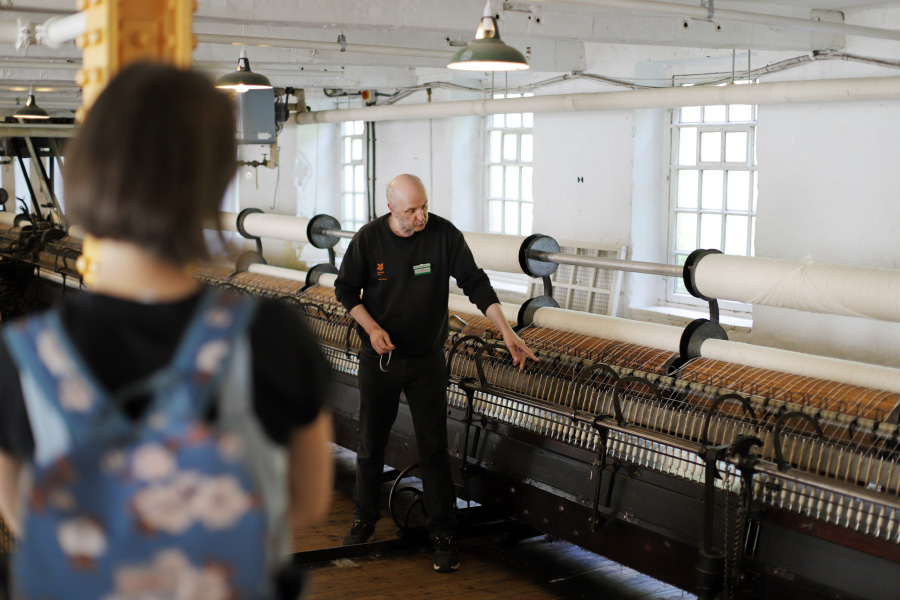 A National Trust volunteer (there are many around the mill - they are super knowledgeable and lovely) showed us how to card wool ...