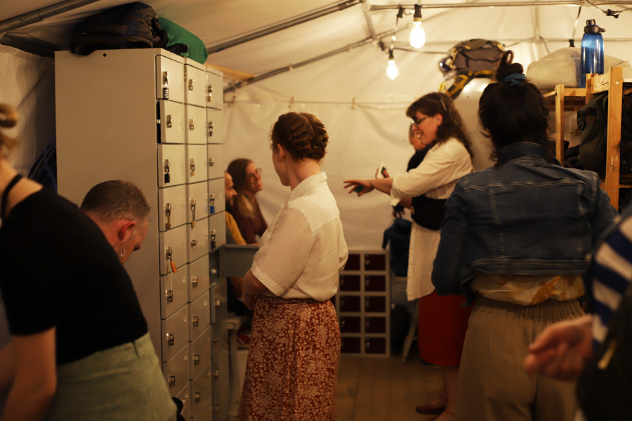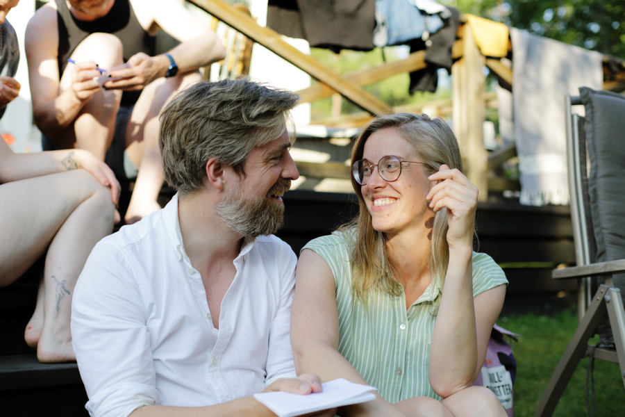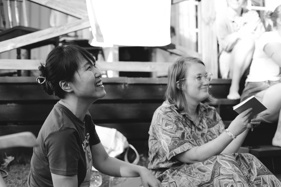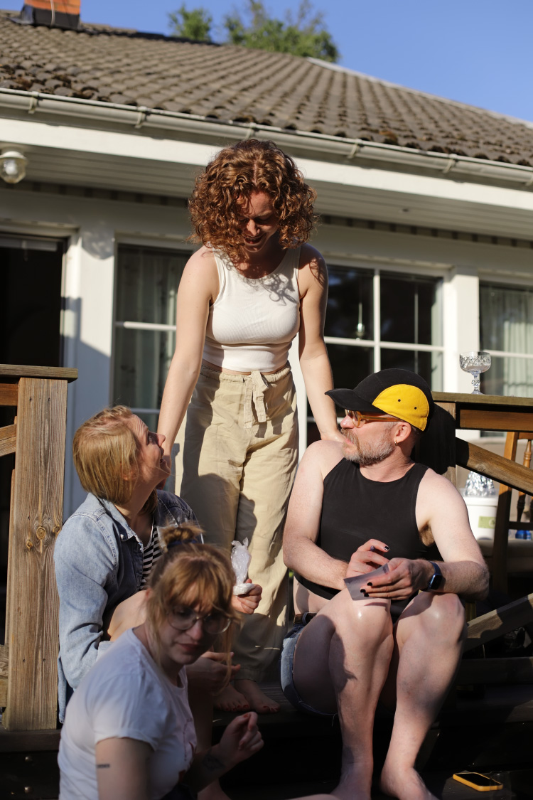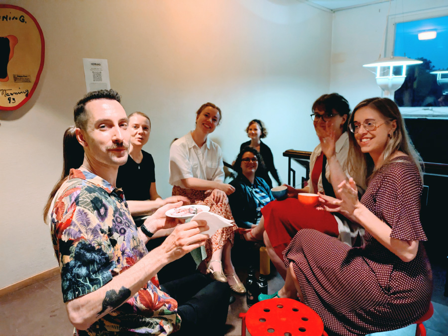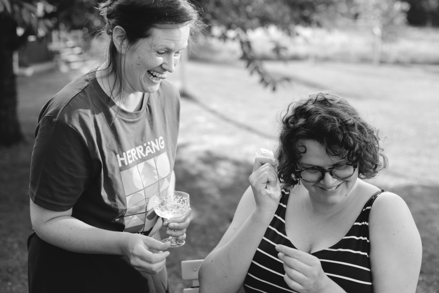 Vi hade bestämt oss för att se invigningen av slow drag night (varje tisdag i Herräng är det slow drag night i stora salen) så vi satte oss i kö i god tid och hade ett eget litet teparty medan vi väntade. Det gör alls inget att vänta på något när man kan sitta med såhär trevligt sällskap! (Kommer ni ihåg när jag sjöng på invigningen av slow drag night för exakt tio år sedan? Det var ju KUL!).