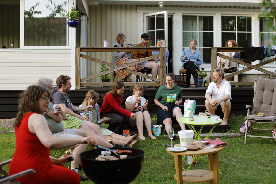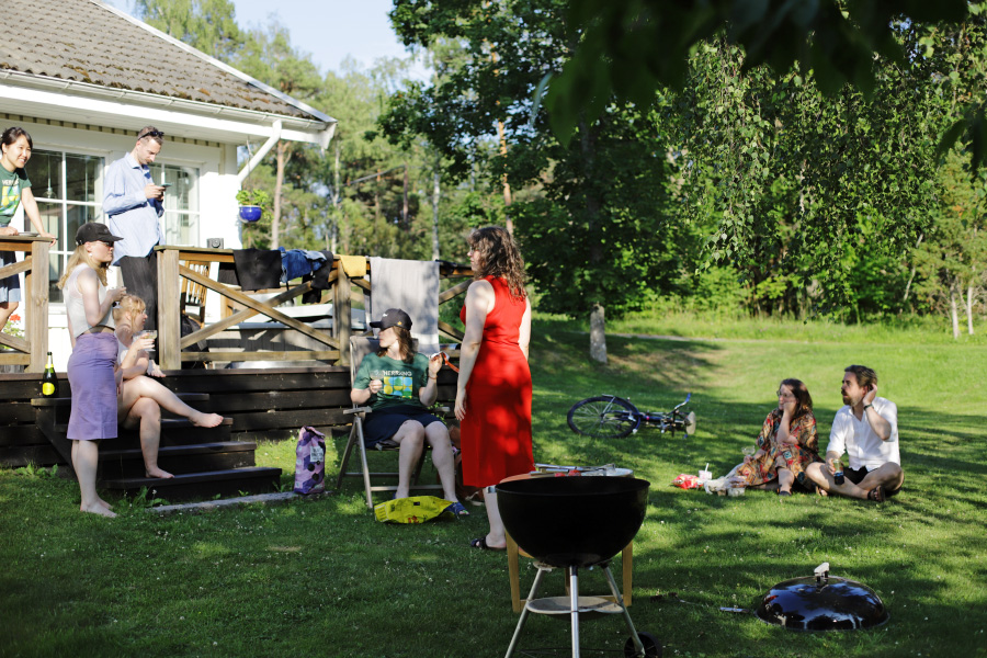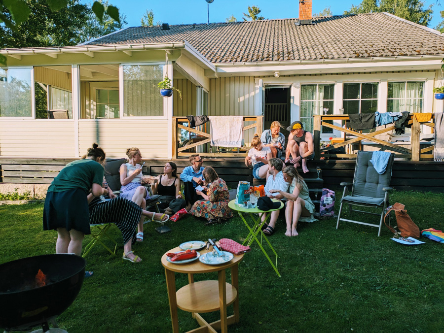 Dagen efter var det onsdag och efter lektionerna ställde vi till med grillmiddag i trädgården mellan våra hus. Kvällsljuset var ljuvligt.