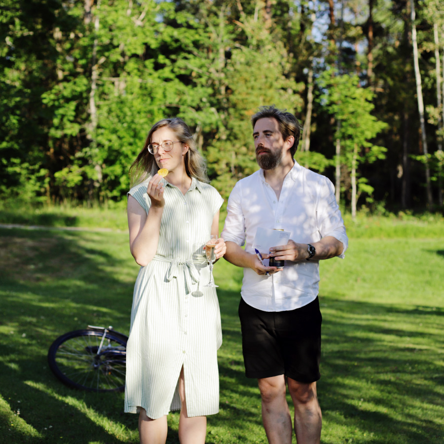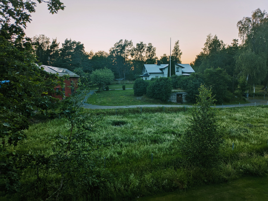 Här är den där ängen igen, nu lite senare, precis innan vi cyklade iväg till kvällens dans efter en mycket fin förfestkväll.
