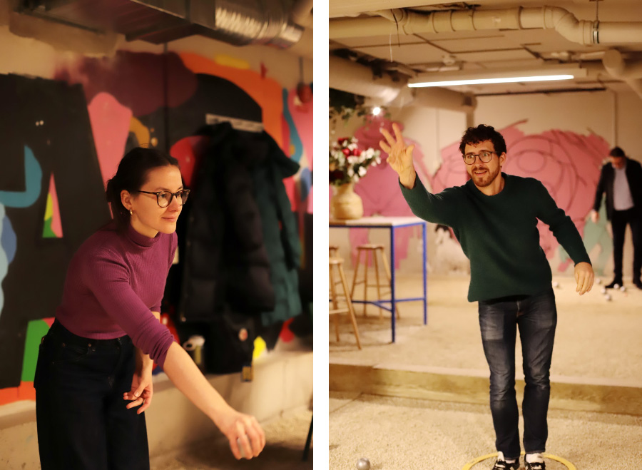 You know what's really fun? Team building! At least when it's with this gang - the local balboa teachers. In my dance society, there's a small amount of money set aside each year for the different teacher groups to organise teacher development and/ or team building. Thanks to Yuhui and Elias who made this happen, me and the rest of the balboa teachers went out for pétanque and dinner after the spring planning meeting. And it was SO FUN.