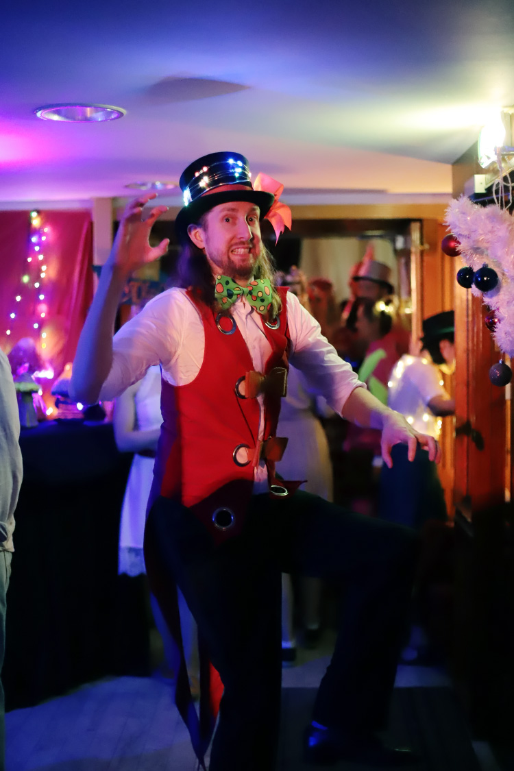 Julfest på WCJ! Säger jag inte varje år att det är årets bästa dansfest, eller en av årets bästa i alla fall? Jo, det tror jag bestämt att jag gör. I år var temat "Lucia in Wonderland" - som en sorts tokig och magisk kombination av luciafirande och Alice i Underlandet - och folk hade ansträngt sig inte bara med utklädnader utan med dekorationer. Kolla bara hur fint och tokigt det var på Forum: