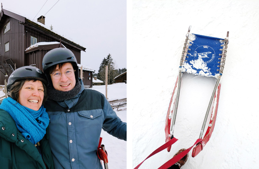 Vi åkte upp till Frognerseteren, hyrde kälkar på Akeforeningen och sedan var det bara att ge sig iväg utför!