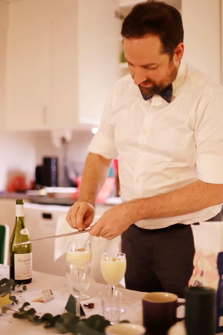 In our friend group we don't feel that the people who are hosting necessarily must be in charge of the food. Luckily we have friends who actually enjoy planning and cooking the food. :) Karin was in charge of the starter and main (with Liam as her kitchen slave for a few hours in the afternoon) and did an absolutely stellar job as usual.
