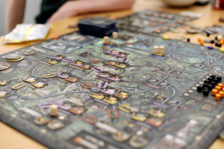 Dag 3: Brass: Birmingham. Veckans roligaste spel för mig. Komplext var det! Det tog mig en god stund att fatta reglerna (har nog fortfarande inte fattat helt), men blev mycket förtjust. Också roligt att jag ju varit på många av platserna i spelet och hört Liam prata om ännu fler eftersom det är exakt här han vuxit upp.