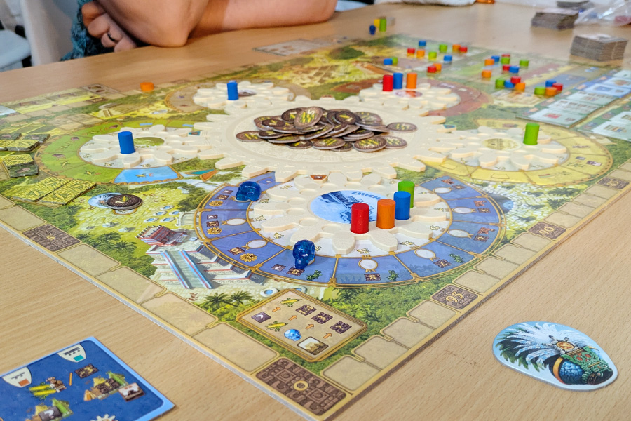 Senare på kvällen gav vi oss på ett parti Tzolk'in, men det borde jag inte gjort, för jag var egentligen för trött då för att lära mig ett nytt spel - men jag kom inte på det förrän jag gett mig in på det. Egentligen är det här nog ett roligt spel, jag får ge det en ny chans någon gång.