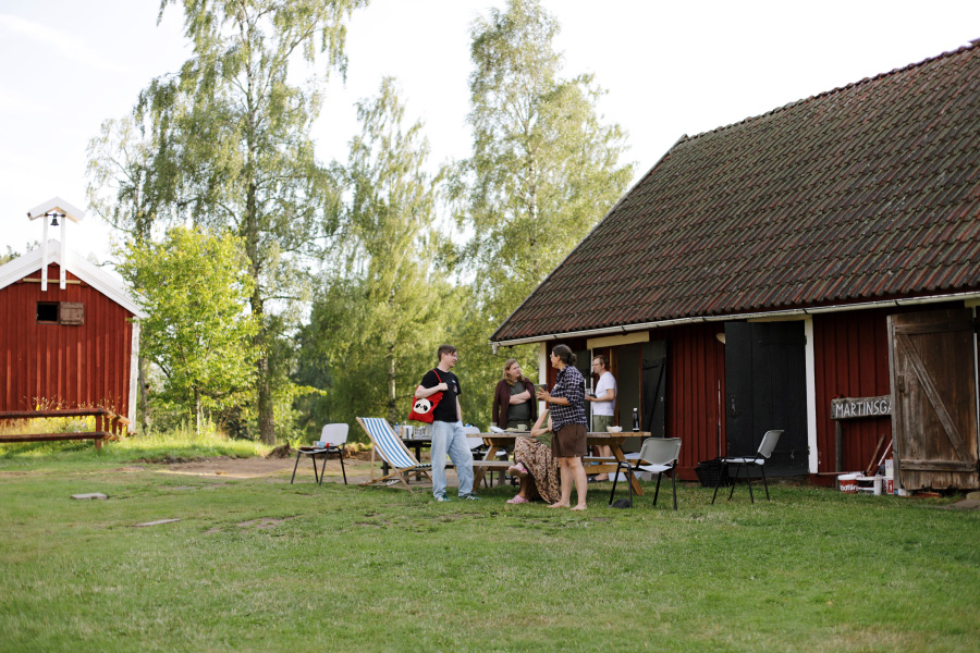 Sedan började det trots allt regna, så då bar vi in bordet med spel och allt i det stora partytältet.