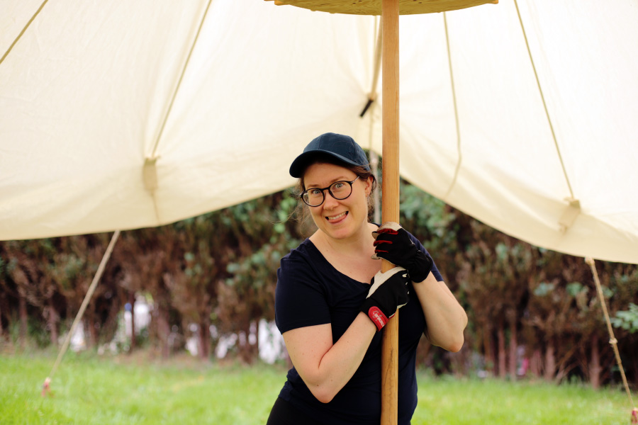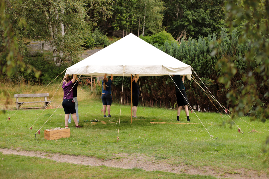 Medeltidsveckan nalkades, så vi samlades i Utby för att prova tältet; bra att veta om alla tåtar finns med och att lagningen som David gjort i tälttaket höll. Det gjorde den utmärkt!