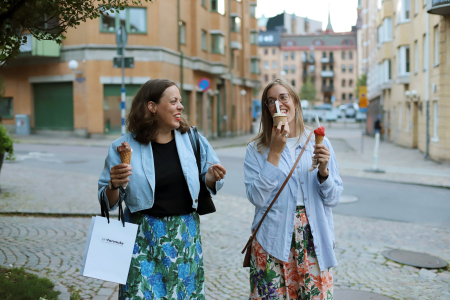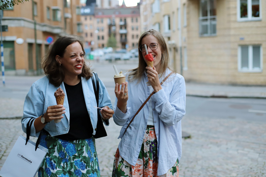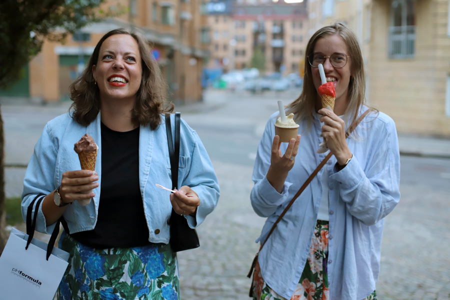 Efter middagen tänkte vi bara ta en kort promenad, men då kom jag på att klockan var fem i nio, och att Råda Gelato ju stänger klockan nio ... Oklart om vi skulle hinna dit, men samtliga ökade på stegen direkt ändå. :)