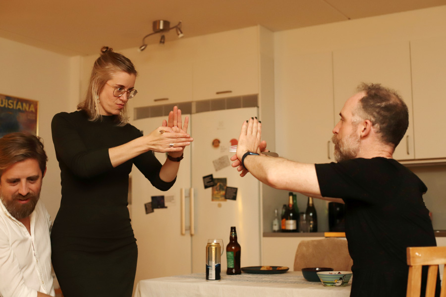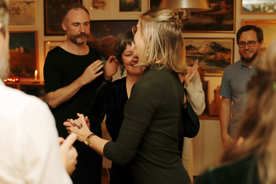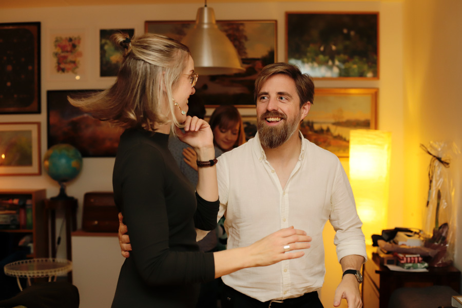Och tydligen är det så att om man inte kan ha köksfest eftersom köket sitter ihop med vardagsrummet, då blir det istället ... hallfest? :)