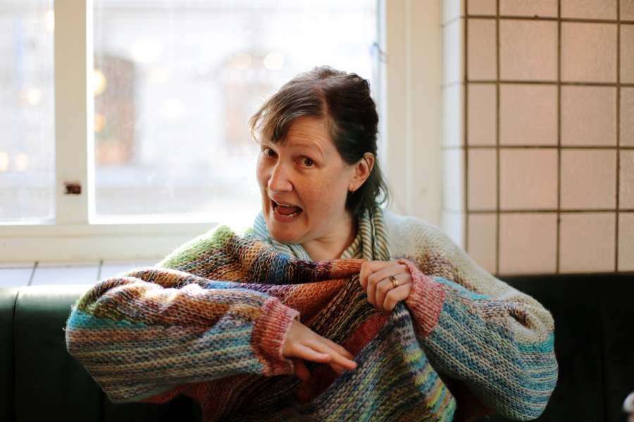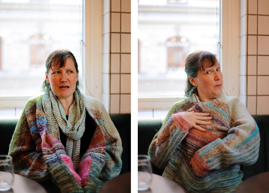 En fredag åt jag lunch med Kate, som visade sin otroliga egenstickade kofta ("it has pockets!"). :)
