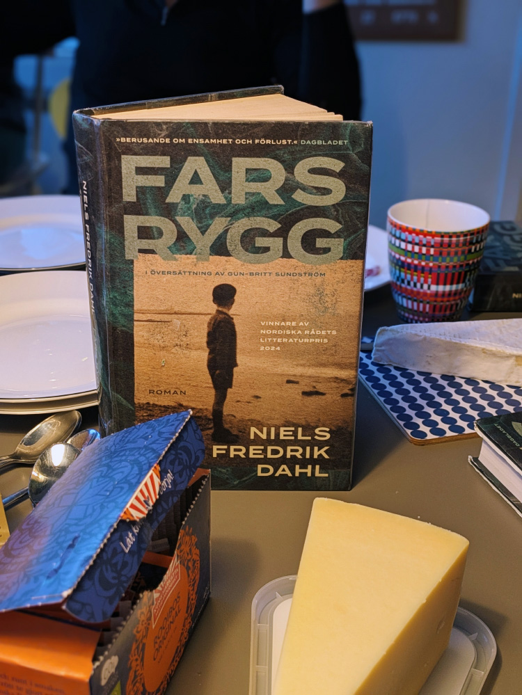 Det var bokklubbsmöte och vi hade läst Fars rygg av Niels Fredrik Dahl. Jag gav den en tvåa, lägsta betyget jag gett för någon bok i bokklubben hittills. Tyckte att den bara upprepade sig och upprepade sig, och att det inte fanns någon variation i ensamheten och hjälplösheten som beskrevs.